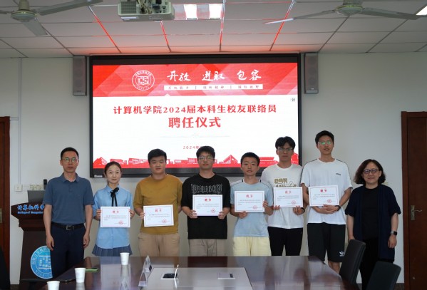 座谈会后还举行了校友联络员聘任仪式,刘健荣和黄圣君为计算机学院2024届本科生校友联络员颁发聘书。