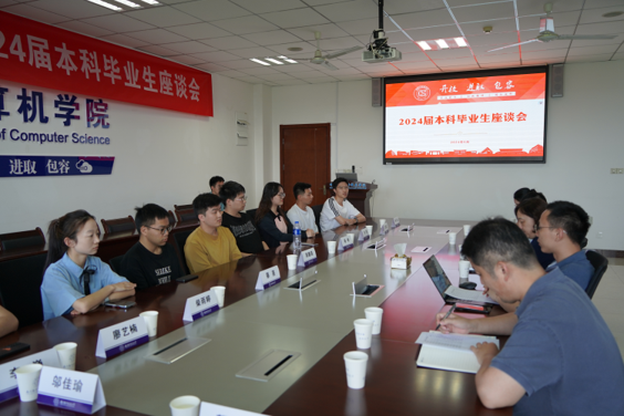 6月17日,计算机学院2024届本科毕业生座谈会在学院楼509会议室召开。计算机学院党委书记刘健荣,党委副书记王宁,副院长黄圣君、李鑫,教学办主任,毕业班辅导员以及毕业生代表们参加座谈会,亲切交流,畅谈青春成长,共绘未来蓝图。会议由段仕伟主持。