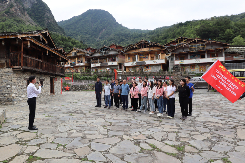 7月13日,学员们走进中央红军长征硗碛居住地旧址,沉浸式体验毛泽东、周恩来、朱德等老一辈领导人受邀住进藏家锅庄楼的场景,追寻伟人长征路上的足迹。学员们在此聆听了微党课《毛泽东、周恩来、朱德长征在宝兴》,感受中国共产党的为民情怀。