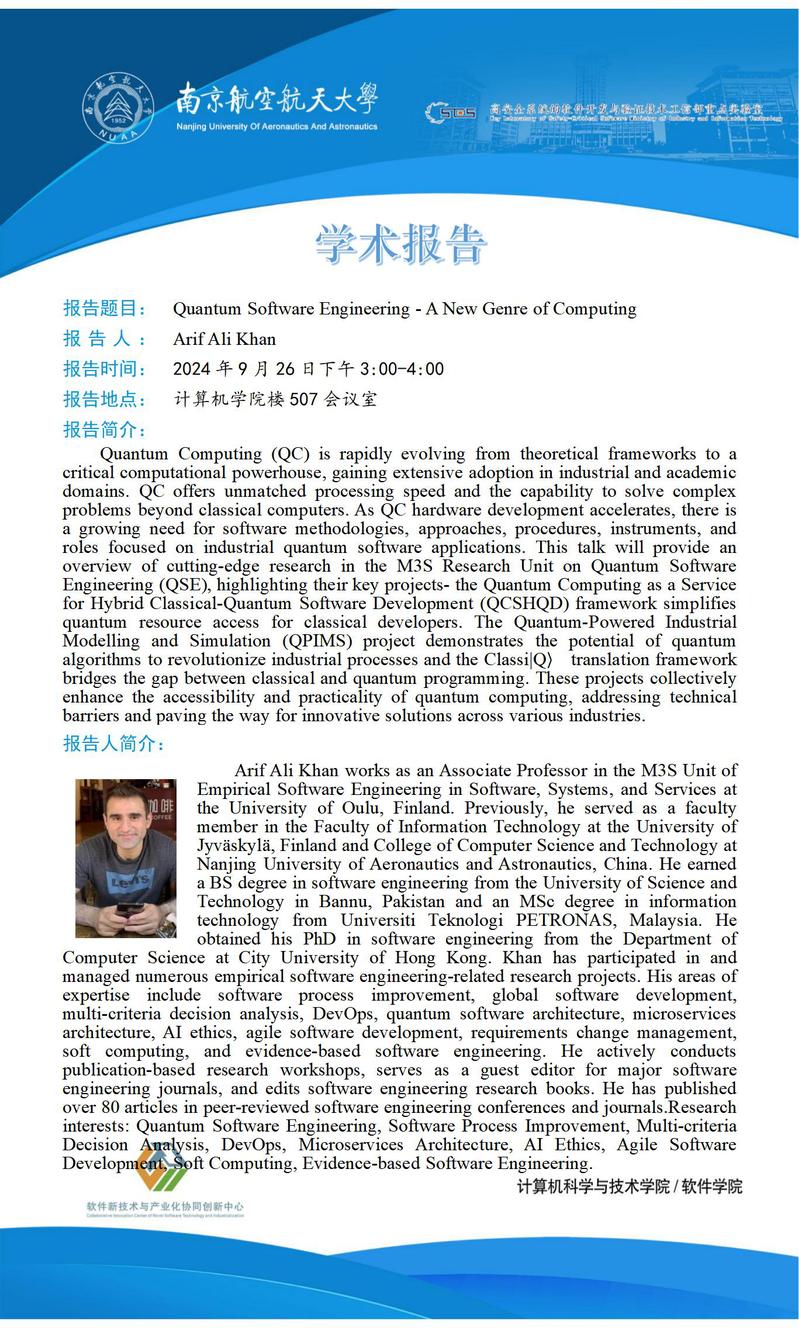 【石榴大讲堂】Quantum Software Engineering- A New Genre of Computing