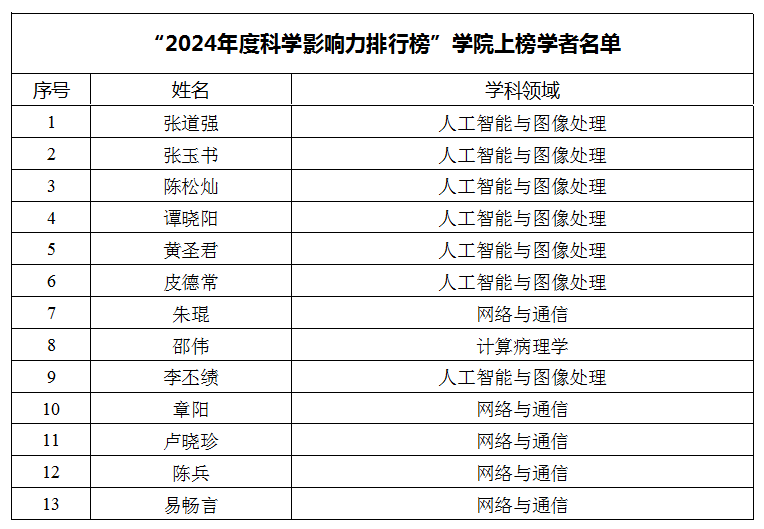 此次入选,标志着我院在人工智能与图像处理、网络与通信等领域研究水平和学术影响力的持续提升与突破,彰显了我院在高层次人才队伍建设中的显著成效。