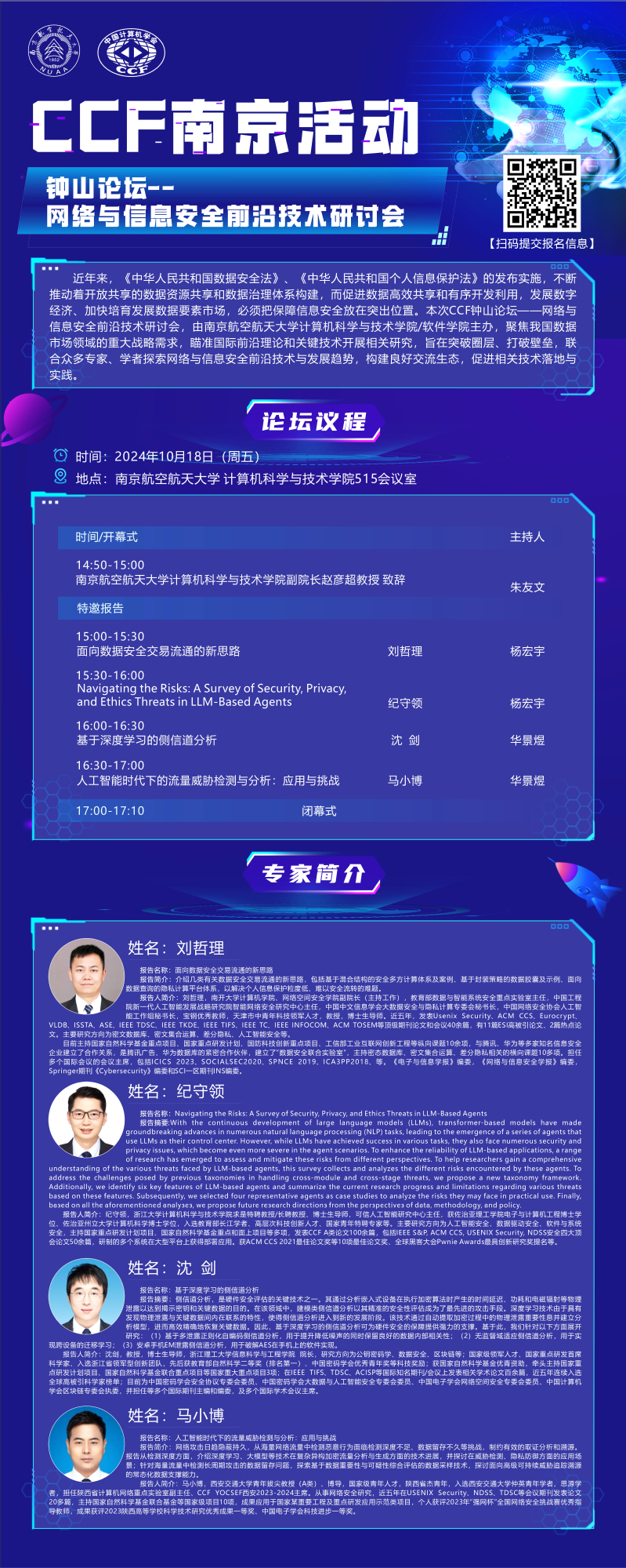 【学术会议】钟山论坛—网络与信息安全前沿技术研讨会