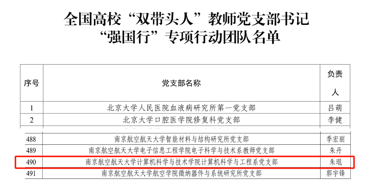 近日,教育部办公厅公布了全国高校“双带头人”教师党支部书记“强国行”专项行动团队名单(教思政厅函〔2024〕15号),我院计算机科学与工程系党支部成功入选。这是学院党委继入选第四批“全国党建工作标杆院系”培育创建单位后,学院党建工作2024年取得的又一项国家级荣誉。
