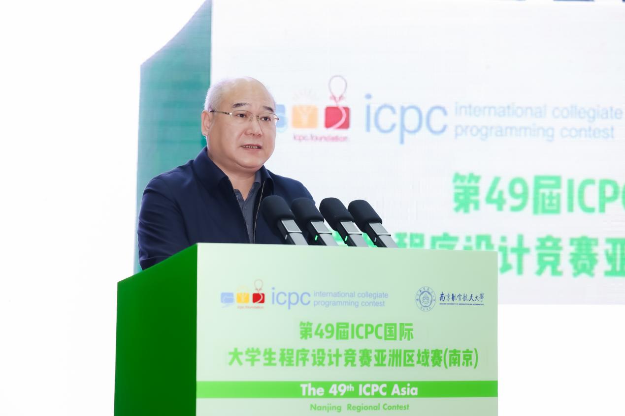 黄志球代表学校致辞,他指出,ICPC系列赛事为发现、培养、聚集更多优秀程序设计人才提供了重要的平台,充分展示了大学生创新能力、团队精神和分析解决问题的能力。希望以此次大赛为契机,与兄弟高校加强交流,共同为卓越人才培养和软件高质量发展贡献力量。