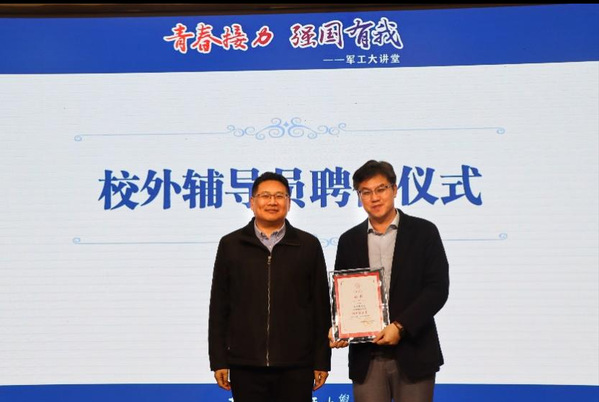 讲座开始前,贡海俊为徐兵杰颁发了“校外辅导员”聘任书。