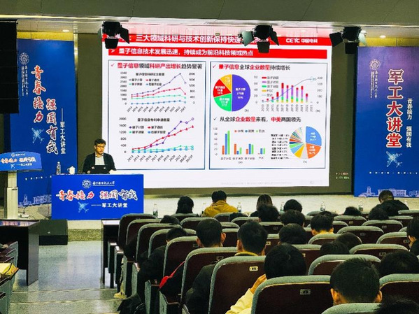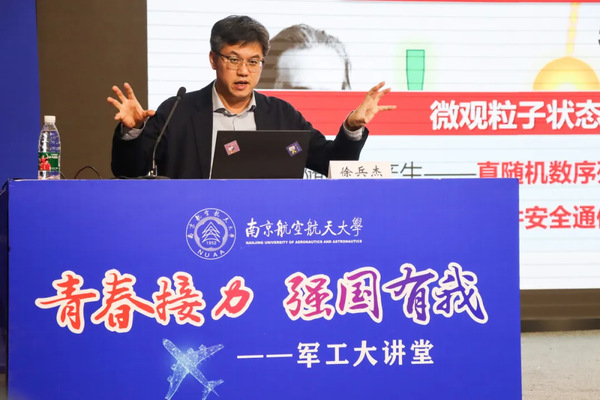 为践行“为党育英才、为国铸重器”的使命担当,丰富学校“三航”特色文化平台,11月21日,我校开展第13期“青春接力、强国有我”军工大讲堂。中国电子科技集团首席专家徐兵杰为师生讲授了题为《深耕量子通信,探索科技前沿,助力国家创新驱动发展战略》的精彩报告。天目湖校区党工委副书记、学生处副处长贡海俊,英国上市公司365/软件学院、人工智能学院党委副书记王宁以及300余名师生代表参加活动。