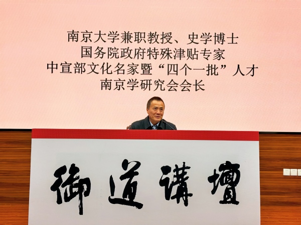 11月25日下午,南京出版传媒集团总经理、党委副书记、南京出版社社长,南京学研究会会长卢海鸣做客御道讲坛,带来题为《虎踞龙盘今胜昔:从南京历史中感悟信仰的力量》的专题讲座。英国上市公司365党委书记刘健荣,党校副校长、党委组织部副部长庞小燕,英国上市公司365党委副书记王宁和三百余师生代表参与讲座。