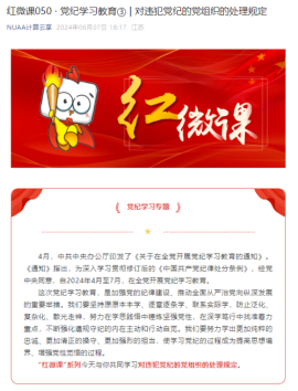 二是建设“廉矩阵”、打造“廉品牌”,在学院网站、微信公众号等平台设立党纪学习教育专栏,结合学院文化特色,制作“红微课”党纪学习或警示教育推送。创作“喔喔”干部清廉教育漫画,采用基层干部喜闻乐见的方式,通过学院IP形象和漫画展等形式营造和弘扬崇尚廉洁、抵制腐败的良好风尚,让廉洁文化“活”起来。