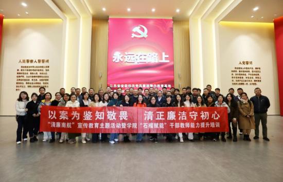 一是注重正面引领,赴江宁区溪田勤廉教育基地,组织基层干部依次参观勤俭清廉、勤作思廉等展区,并在“茶、莲、松、竹”为主题的户外廉政教学点感受廉洁文化氛围,通过沉浸式教学,强化党员干部教师们树牢党纪意识、严明纪律规矩的思想自觉。前往校园法治文化馆、模拟法庭及党纪学习教育“沉浸式”实境课堂参观学习,涵养“清廉学院”建设,推进学院行稳致远。