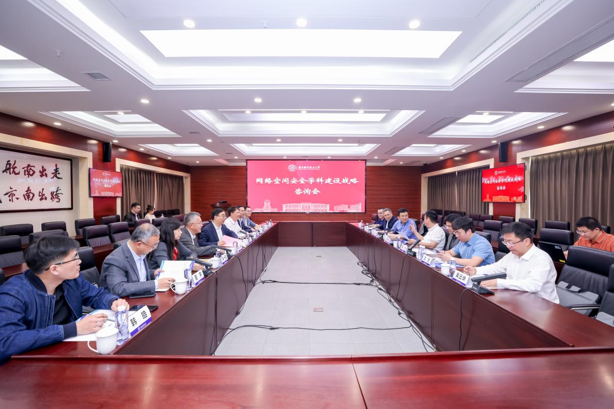 3月26日上午,网络空间安全学科建设战略咨询会在我校召开。中国科学院院士郭世泽、奇安信科技集团总裁吴云坤、南京市六合区委副书记荣飞以及来自复旦大学等知名高校的网络空间安全领域专家学者受邀参会,校长姜斌出席会议,发展规划处、研究生院、科研院、国际创新港建设管理办公室、英国上市公司365等相关单位负责同志参加会议。会议由发展规划处处长田威主持。