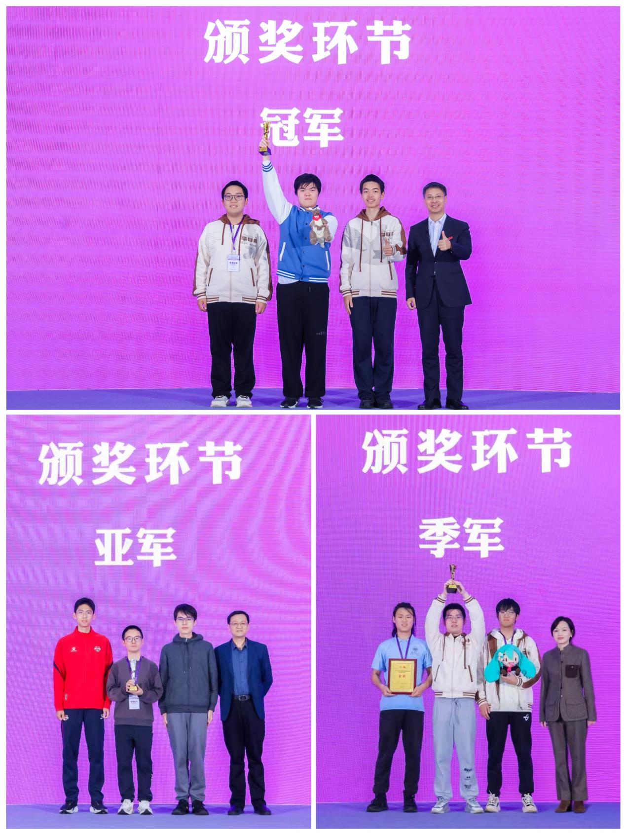 现场通过激动人心的大屏幕滚榜形式揭晓了金、银、铜奖的参赛队伍,最终清华大学赛队夺得冠军,北京大学的赛队获得亚军,复旦大学赛队摘得季军。