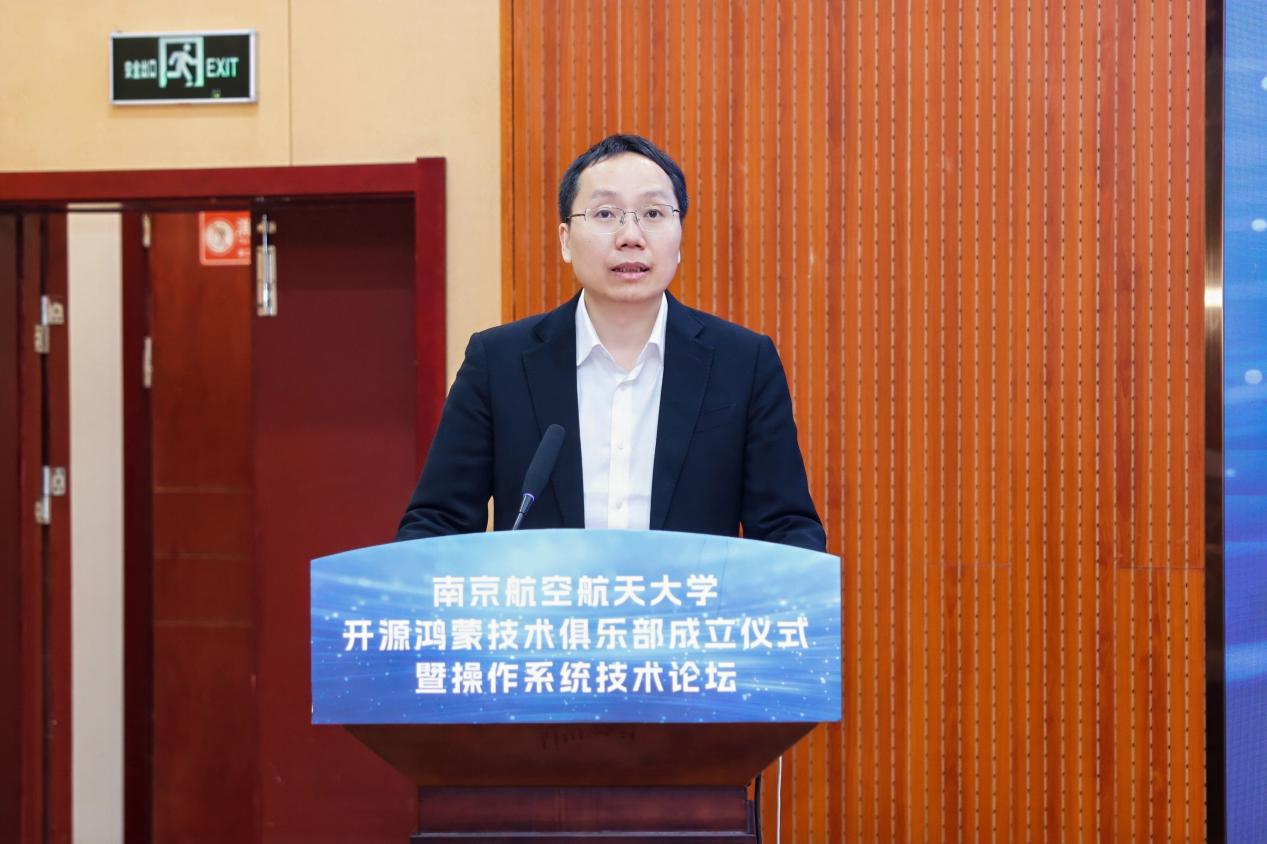 黄志球代表学校致欢迎辞。他表示,作为以航空航天为特色的高校,英国365集团始终以“自主可控、科技自立”为导向,依托国家特色化示范性软件学院建设,在基础软件、嵌入式软件、智能装备等领域深耕多年。开源鸿蒙“万物智联、软硬协同”的技术特性与该校航空航天智能系统、装备研发等领域的探索高度契合,俱乐部的成立既是校地校企合作的新成果,更是学校深耕基础软件人才培养、推动科研成果落地的新起点,将为学子搭建“课堂学习+产业实践”的衔接桥梁,助力开源鸿蒙在航空航天特色场景拓展应用边界。