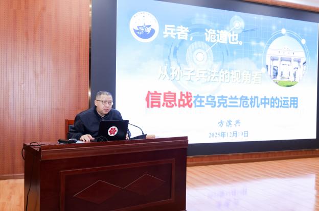 12月19日,方滨兴院士在图书馆报告厅作了题为《从孙子兵法视角看信息战在乌克兰危机中的运用》的学术报告。报告系统阐释了网络空间安全的“三维九空间”理论体系,并重点解析了“风险维”中的“作用空间”。结合乌克兰危机中的具体实例,方院士详细剖析了设施战、网络战、情报战与认知战等信息战形式的实践表现。整场报告理论深刻,紧密联系实际,为师生提供了前沿的学术视角,获得了大家的高度评价。